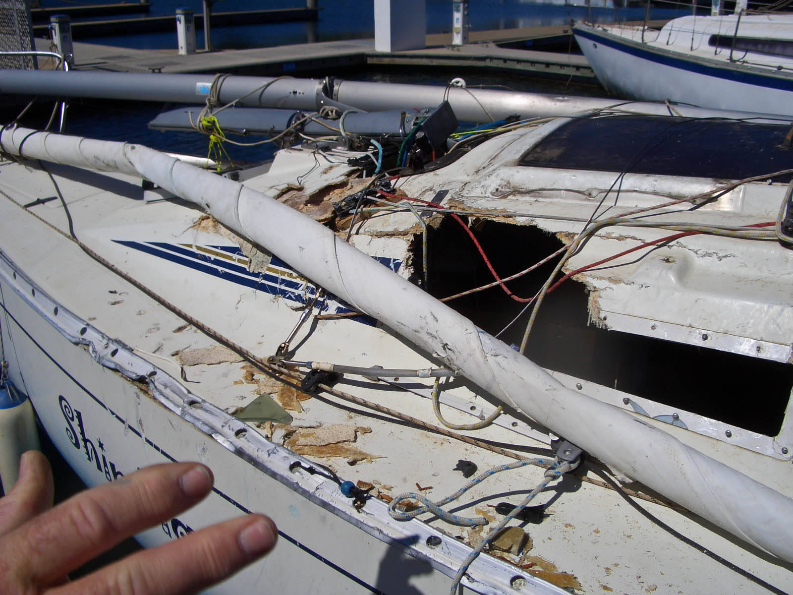 | Close up of the port side damage. Trashed I think is the word! |